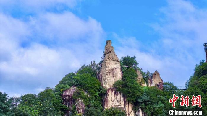 藍天白云下,秦嶺綠意盎然。西安翠華山景區(qū) 供圖