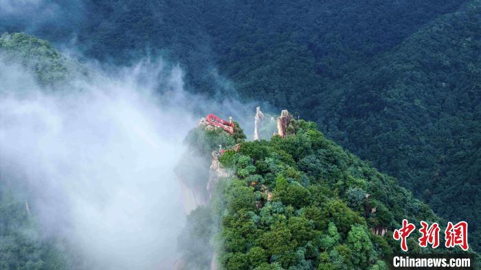 蒼翠的山脈霧氣氤氳,時隱時現(xiàn)。西安翠華山景區(qū) 供圖