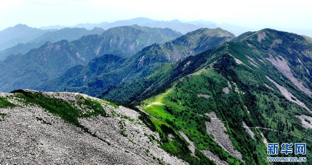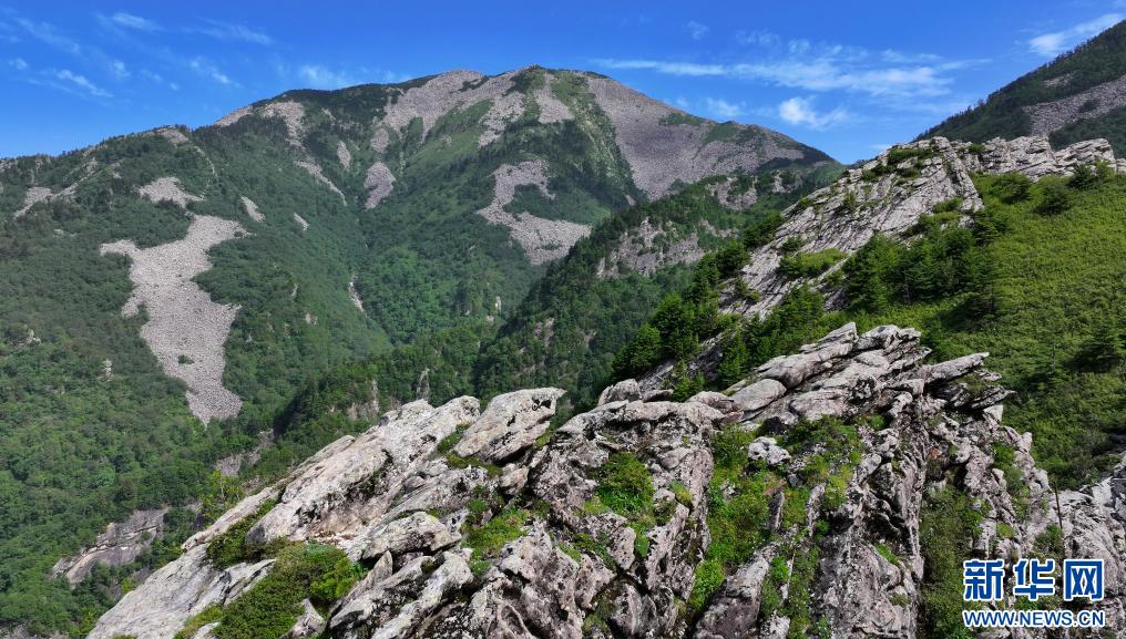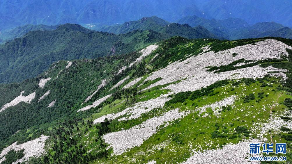 陜西朱雀國(guó)家森林公園內(nèi)石海及高山草甸景色(7月21日攝,無(wú)人機(jī)照片)。