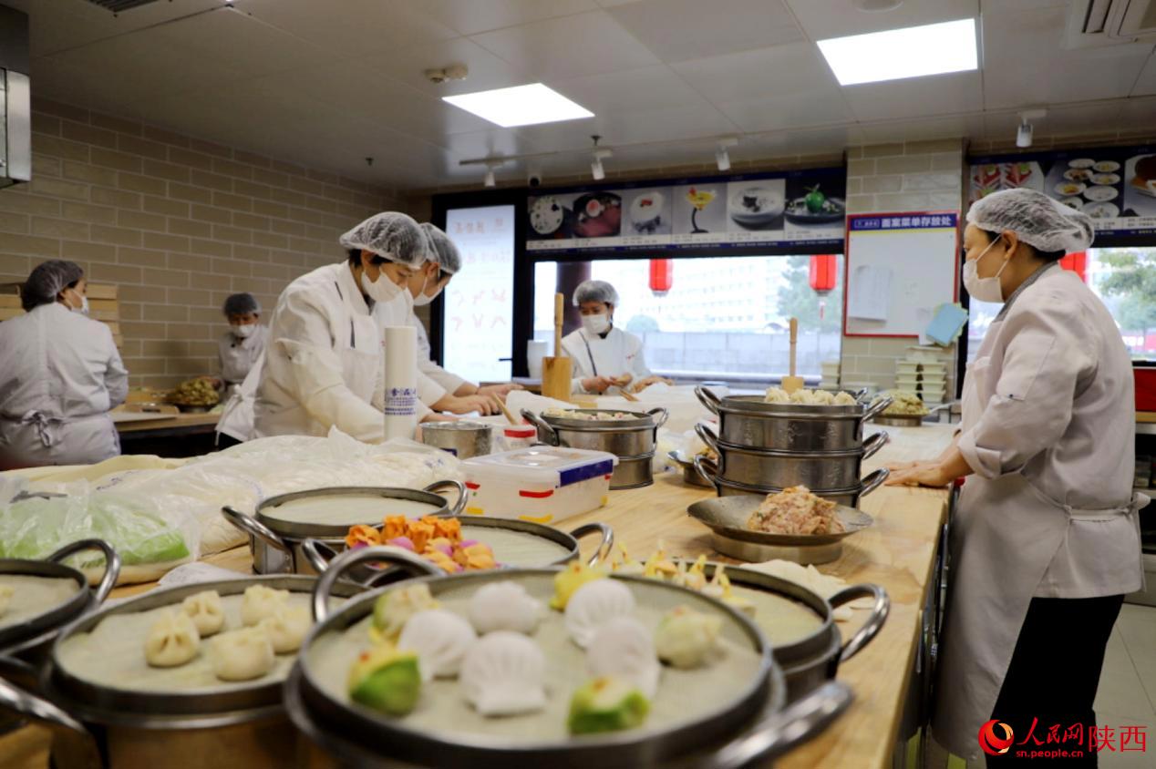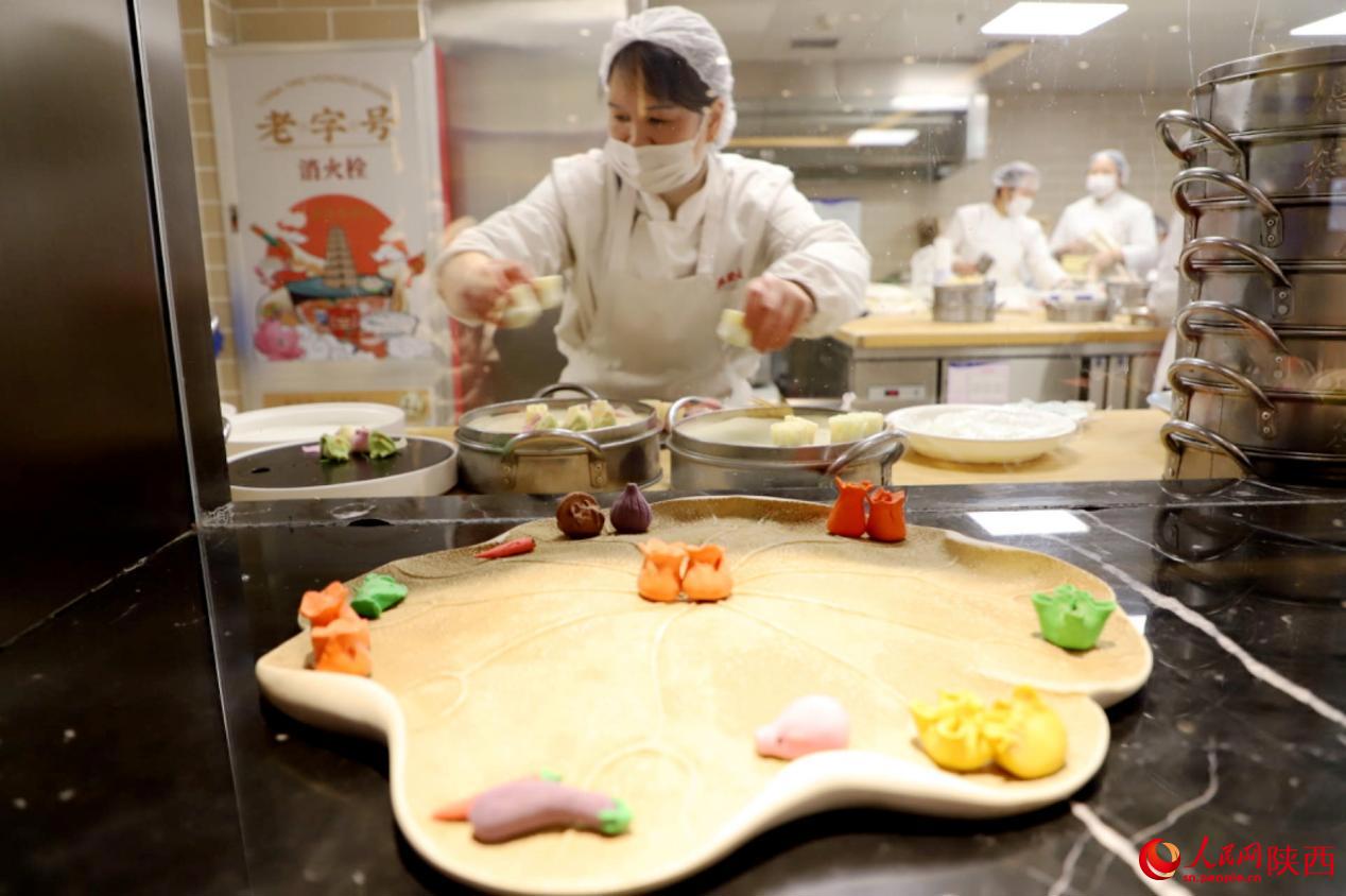 德發(fā)長創(chuàng)建于1936年,作為一家中華老字號,一道具有濃郁文化特色的“千古風(fēng)味”餃子宴已然成為西安的一張“金色名片”。高珊是德發(fā)長鐘樓店的一名非遺傳承人,那些倍受顧客歡迎、形狀各異的餃子正是出自她們團隊之手。