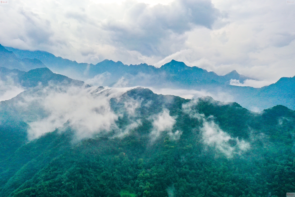 數(shù)十分鐘后,雨帶北移,秦嶺終南山世界地質(zhì)公園翠華山景區(qū)驚現(xiàn)云海。