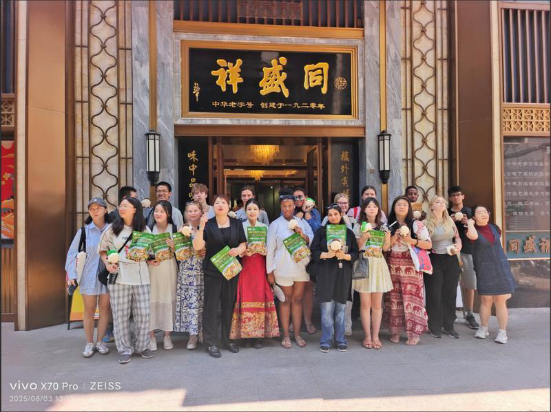 文明的深度對話,同樣在西安街頭巷尾升騰的煙火氣中熱烈展開。訪學(xué)團走進西安飯莊、德發(fā)長餃子館、同盛祥、清雅齋、西安烤鴨店等承載著城市記憶的中華老字號。在非遺大師的引導(dǎo)下,青年學(xué)子們親手掰開一塊塊坨坨饃,感受饃粒大小對湯汁吸收的微妙影響;嘗試捏出形態(tài)各異的花樣餃子,體驗指尖上的匠心……這不僅是味蕾的盛宴,更是理解西安生活美學(xué)、感悟中華飲食“食不厭精,膾不厭細”智慧的獨特課堂。