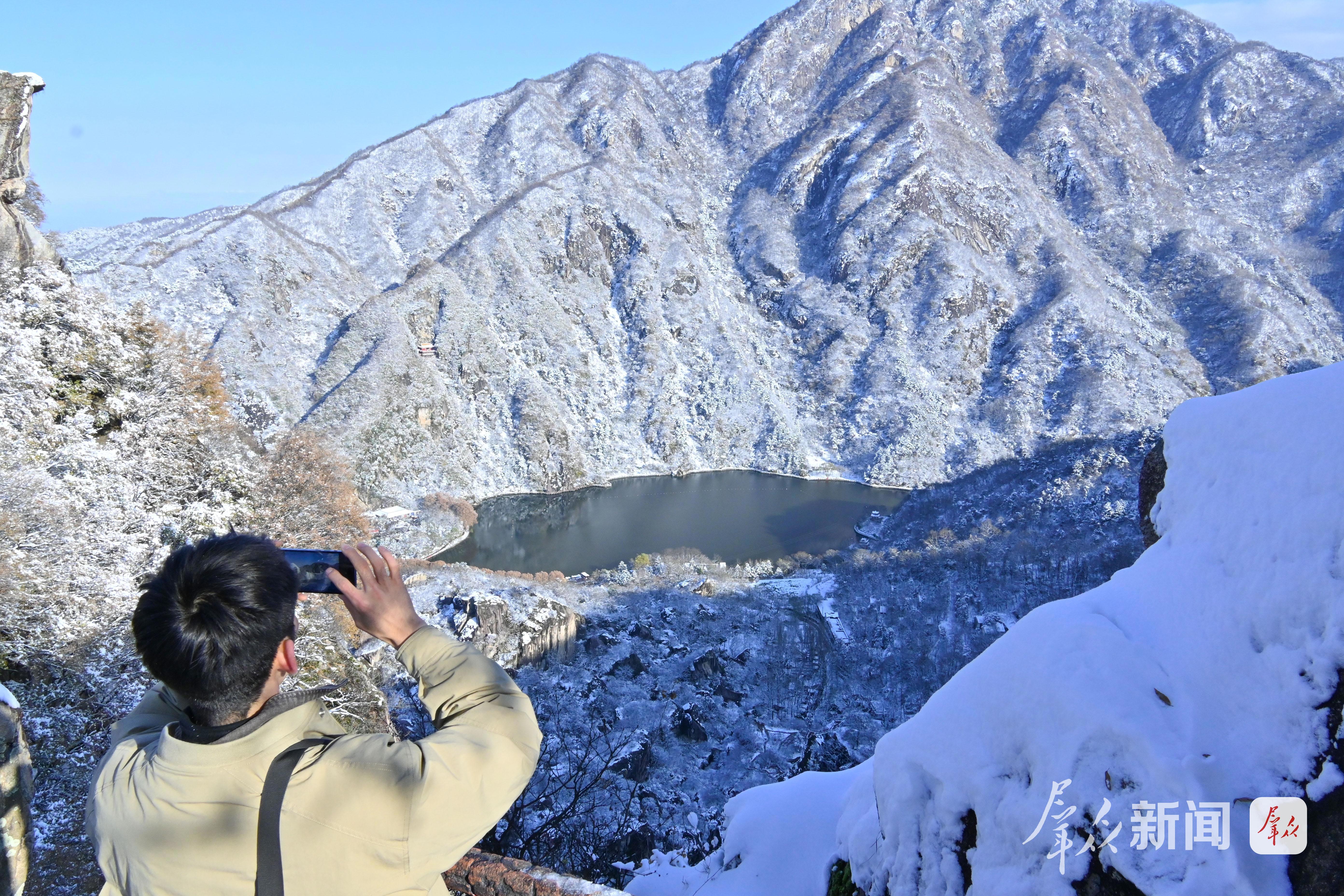 11月17日,西安翠華山景區(qū)內(nèi),游人漫步于銀裝素裹的靜謐山間,宛若置身一幅徐徐展開的水墨畫卷。