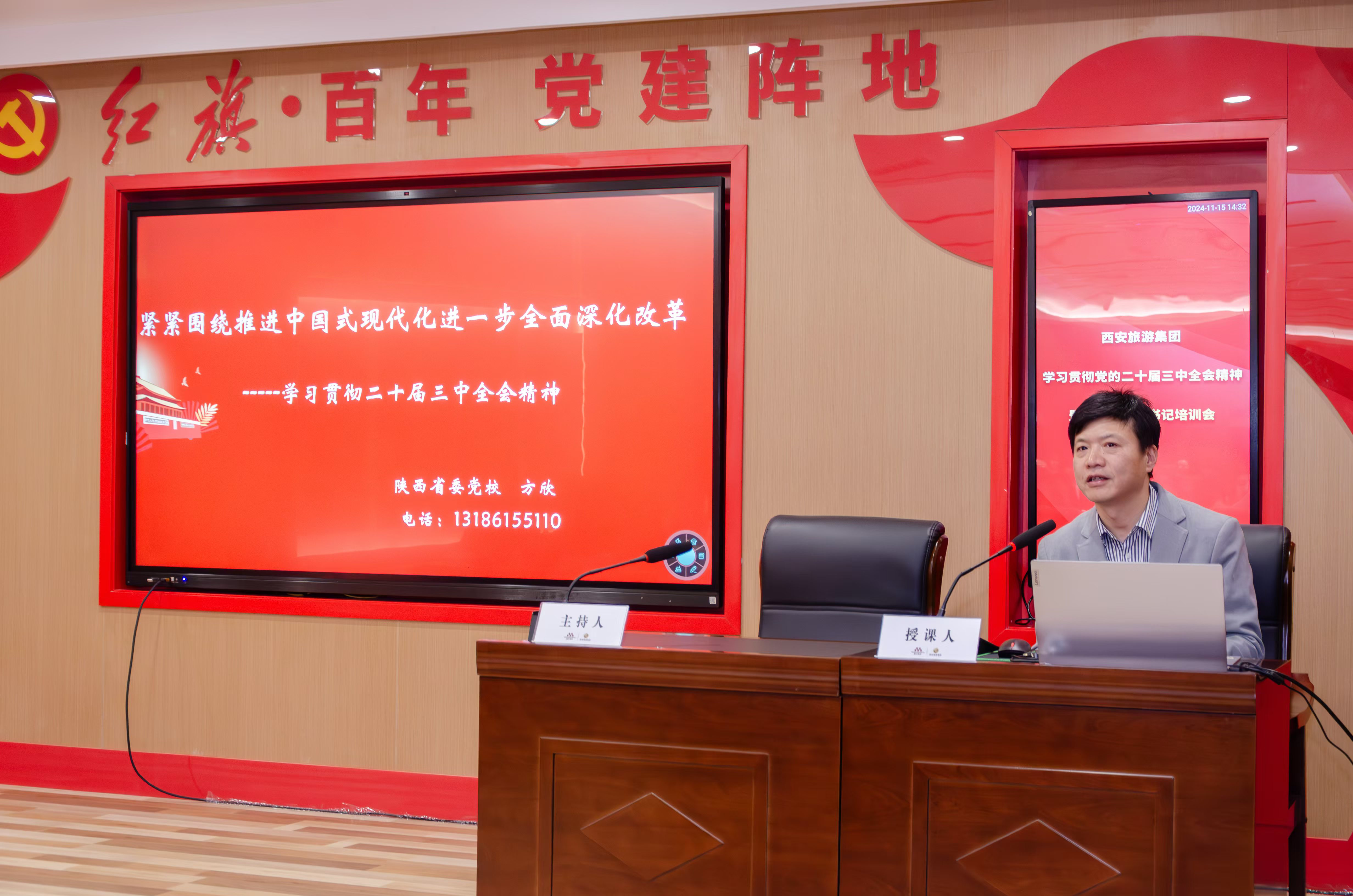 培訓(xùn)會(huì)邀請陜西省委黨校應(yīng)急培訓(xùn)中心副主任方欣教授授課,方教授以《緊緊圍繞推進(jìn)中國式現(xiàn)代化,進(jìn)一步全面深化改革》為題,系統(tǒng)講授了黨的二十屆三中全會(huì)以及全會(huì)《決定》的主要內(nèi)容和框架,重點(diǎn)對黨的二十屆三中全會(huì)關(guān)于國資國企改革相關(guān)內(nèi)容進(jìn)行了深入解讀。