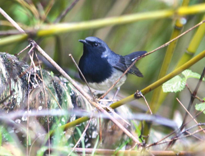 在秦嶺地區(qū),黑喉歌鴝于每年的4月底至5月初遷至中高海拔地區(qū)繁殖,8月中下旬南遷越冬,預(yù)估其數(shù)量約為50只。其多棲息于海拔2000米至2600米針闊混交林下的秦嶺箭竹林中,筑巢多選擇在有一定坡度、易于排水且向陽的天然土洞內(nèi),孵化和育雛期皆為12天左右。繁殖期成對(duì)活動(dòng),主要以鱗翅目和雙翅目幼蟲為食。