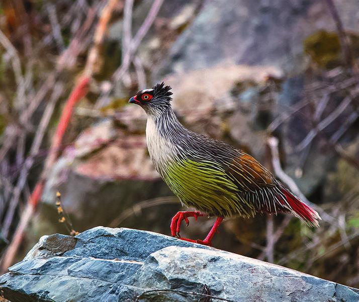 血雉是一種生活在高海拔地區(qū)的瀕危雉類,屬于國(guó)家Ⅱ級(jí)重點(diǎn)保護(hù)野生動(dòng)物。它主要分布于青藏高原外緣及附近的山系之中,包括喜馬拉雅山脈、橫斷山脈、岷山—祁連山脈、秦嶺山脈等地區(qū)。