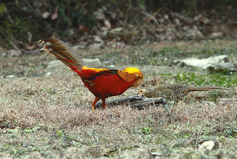展翅飛翔的“東方寶石”朱鹮、結(jié)伴而行的中華秋莎鴨、機(jī)警膽小的黑鸛、為求偶而爭(zhēng)斗的血雉、光彩奪目的紅腹錦雞……它們色彩各異、鳴聲清脆,為秦嶺增添了亮麗風(fēng)景,留下了美妙歌聲。